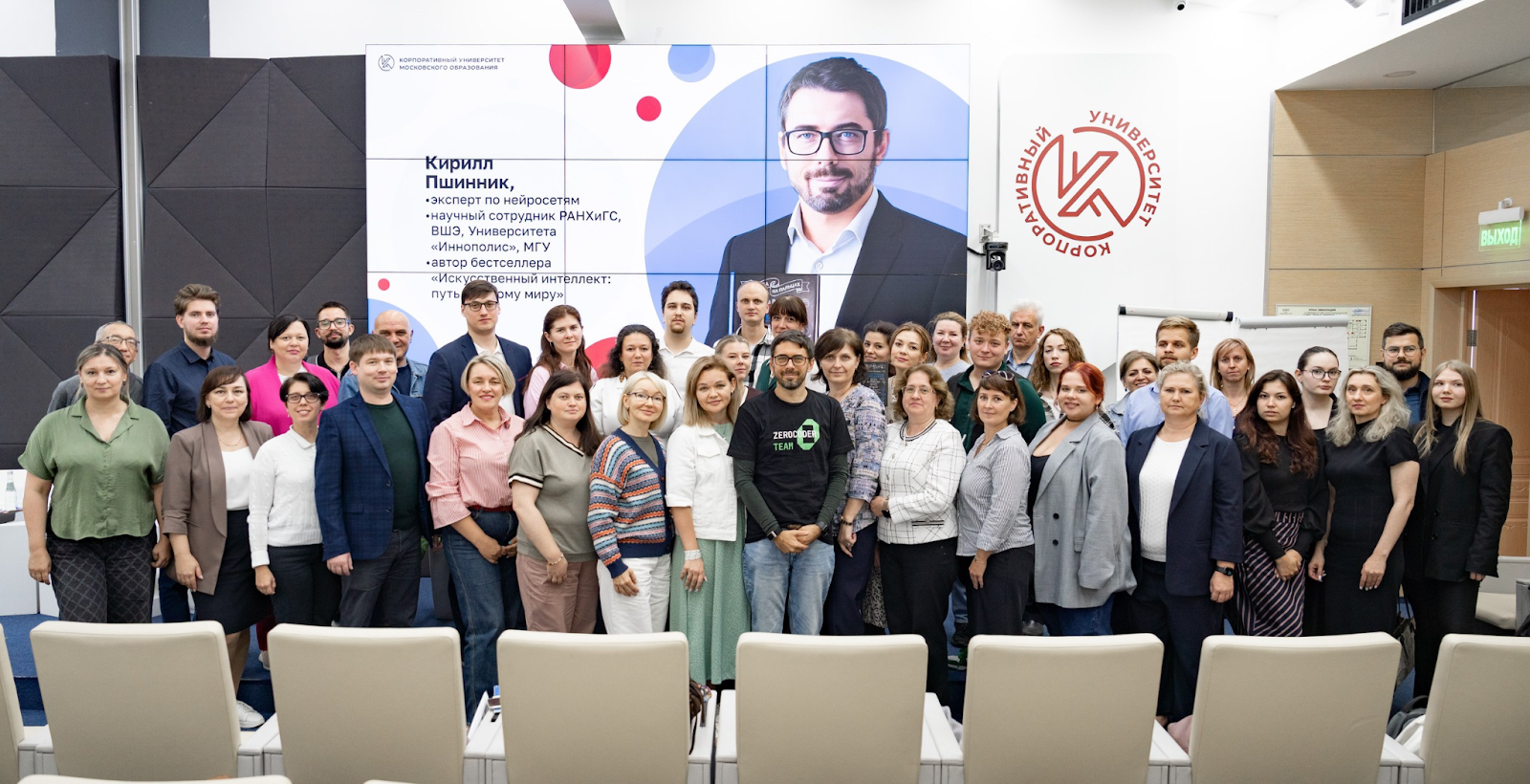 Не обошли стороной и обсуждение ИИ-трендов с педагогами Москвы. Появление Кирилла Пшинника в преддверии Дня учителя в стенах Корпоративного Университета Московского Образования ознаменовало открытие книжного клуба для педагогов, где активно обсуждались вопросы этики использования нейросетей в проверке заданий учеников и лучшие практики использования ИИ учителями.